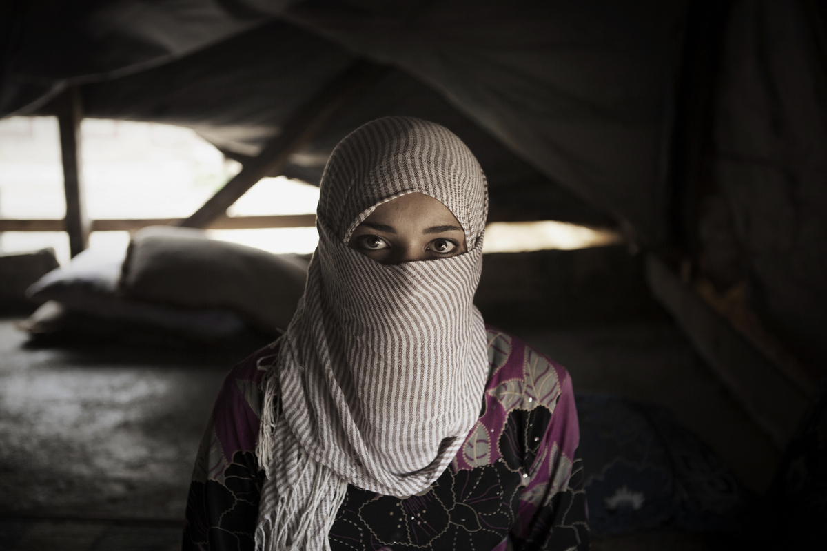 A refugiada síria Hened Al Ahmad foi fotografada no Líbano, onde vive. Aos 14 anos, ela já é uma viúva. Ela se casou há dois anos, e seu marido morreu seis meses após a cerimônia. A menina, que estava grávida, sofreu um aborto. Segundo ela, a causa foi a dor e o medoque ela sentiu.
