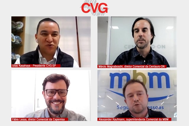Sob a mediação do presidente do CVG-SP, Silas Kasahaya, o encontro contou com a participação de Márcio Magnaboschi, diretor Comercial da Centauro-ON, Fábio Lessa, diretor Comercial da Capemisa, e Alexsander Kaufmann, superintendente Comercial da MBM. Para o trio, Kasahaya perguntou sobre as principais ações das respectivas empresas para o desenvolvimento do mercado de seguro de pessoas.