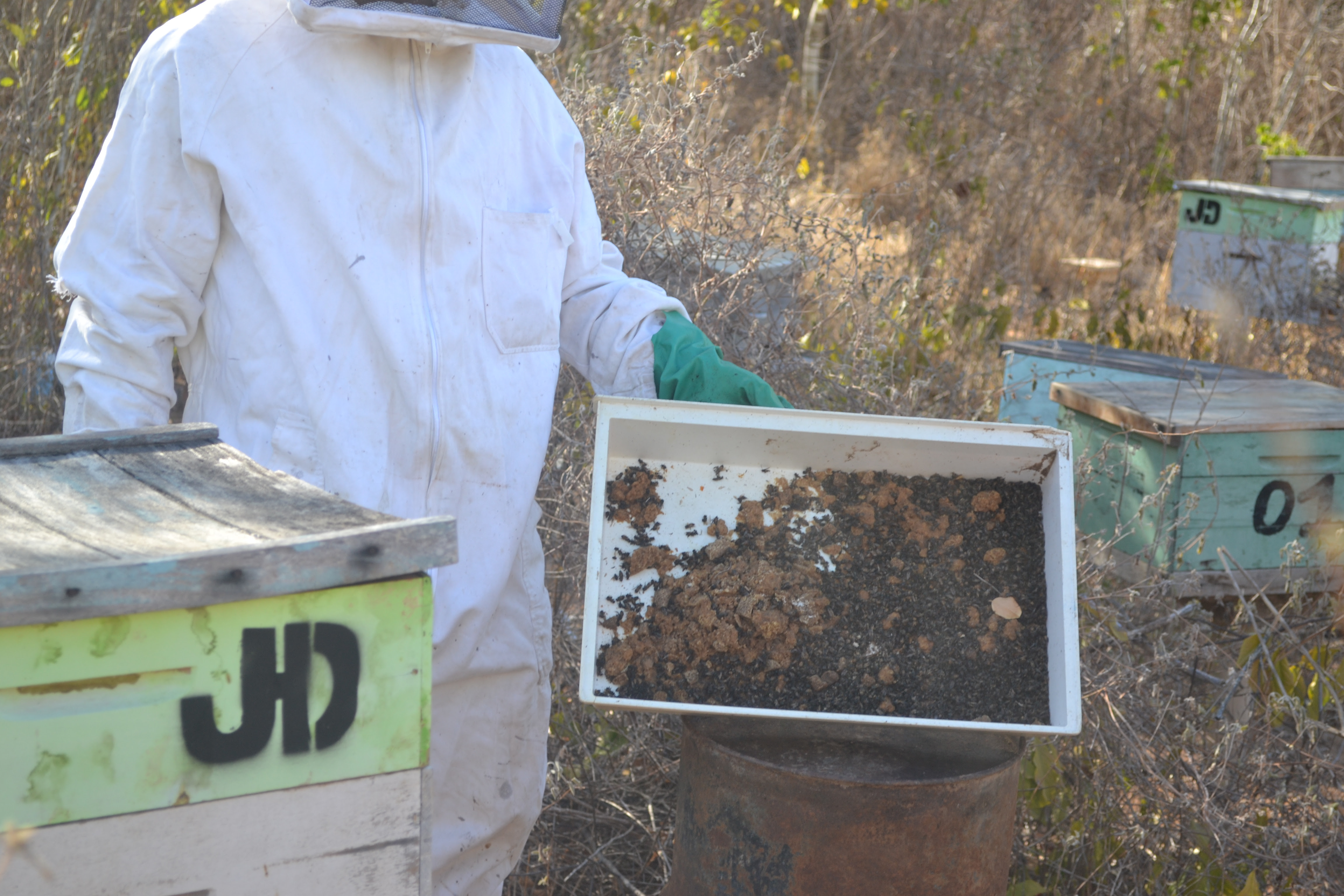 “Entre a tardinha do dia de ontem (terça feira) e todo o dia de hoje (quarta feira), este apicultor e técnico em agropecuária, sentiu a maior tristeza em toda a minha vida profissional com a barbárie que fizeram com as abelhinhas de meu apiário. Diante da seca torrada e prolongada que vem castigando nosso município e região, esta semana foi socorrer minhas abelhas, fornecendo um suplemento alimentar composto de rapadura raspada e agua, servida em algumas vasilhas de plásticos (confira nas fotos). Sem qualquer motivo aparente, um bárbaro criminoso ecológico tacou veneno com a intenção de exterminar todos os enxames de meu apiário. Depois de um levantamento técnico, graças ao Divino, e a intensidade da maldade do criminoso morreram apenas na única vasilha envenenada, centenas ou milhares de abelhas operárias. Como a dosagem foi tão pesada, elas não conseguiram voar e levar o alimento envenenado para suas proles para alimentar, digo, envenenar suas crias. De certo que as colônias não foram dizimadas por completo. Imagine que perversidade do autor do crime ecológico (inafiançável), que acabou de matar os agentes polinizadores mais completos do planeta que estão morrendo de fome em função da completa escassez de floradas. Sempre digo que cabrito bom do sertão não berra, e sertanejo não chora por qualquer motivo, mas nesta manhã de hoje, chorei chorando quando fui pedir socorro a meu amigo pessoal, o ex- prefeito de Monte Santo Everaldo, com quem tenho estreitos laços de amizade. Neste pedido de socorro, o amigo pessoal Everaldo prometeu a este apicultor é técnico em agropecuária que vai levar ao conhecimento do senhor Prefeito, como também, disse-me que vai levar ao conhecimento do Secretário de Agricultura e Meio Ambiente do município e chegar através de um processo investigativo, até o criminoso ecológico. Pra lá de lamentável, e está certo, muito certo, e certíssimo o meu sábio e ex- vereador da minha Uauá, apesar de analfabeto funcional (lê e escreve alguma coisa), mas formadinho na sabedoria deste mundão de nosso Deus, definiu o mais completo conceito do que efetivamente é o ser humano: Deusimar das Abelhas!!! Gente não é gente!!! Se gente fosse gente!! Não fazia gente!!! Merece esse nosso cabra bom de Uauá, o premio Nobel de literatura nordestina”